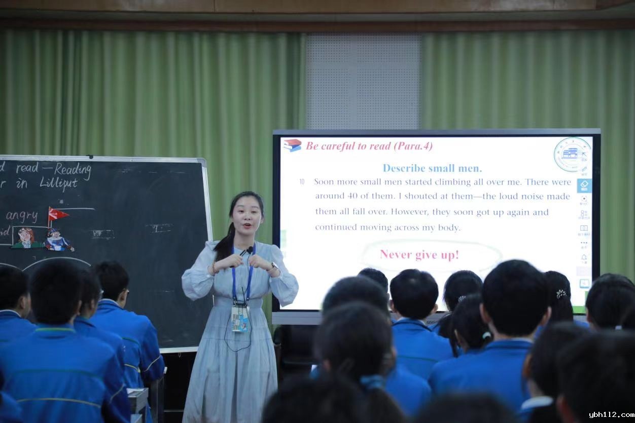 我校龙岗校区黎娟娟老师作现场研讨课展示。黎老师上课的内容为译林版初中英语教材八年级下册第四单元Unit 4 Gulliver in Lilliput Reading的阅读语篇内容。黎老师教学经验丰富,课堂节奏把控能力强,教学设计巧妙,课堂环节紧密切合教学目标。在教学过程中,黎老师充分发挥学生的主体地位和教师的引导作用,学生课堂参与度高,师生互动良好。同时,黎老师将数字资源融入到“八桂教学通”的应用中,将抽象的知识演绎得生动形象,富有创意和个性,极大激发学生的学习兴趣和热情。