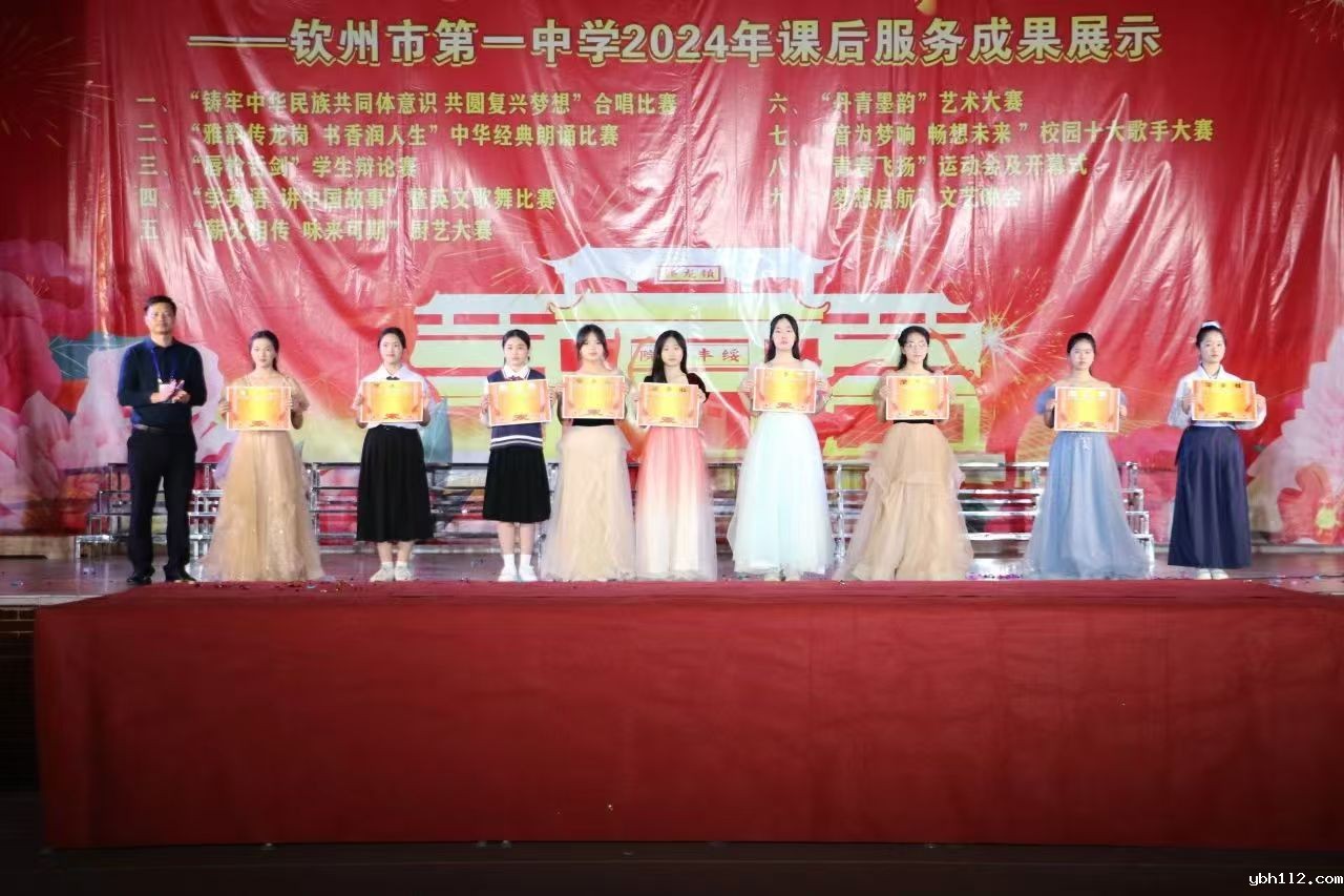 △钦州市教育发展研究中心教师发展与服务研究科科长阳丁玉点评活动 活动的最后,校党委委员、副校长戴兴华,副校长黄辉,校长助理王凯,教务处副主任苏传涯以及后勤处副主任刘子传为获奖班级和学生颁奖。随着颁奖环节的结束,本次合唱比赛在学生们的欢呼声中圆满落幕。